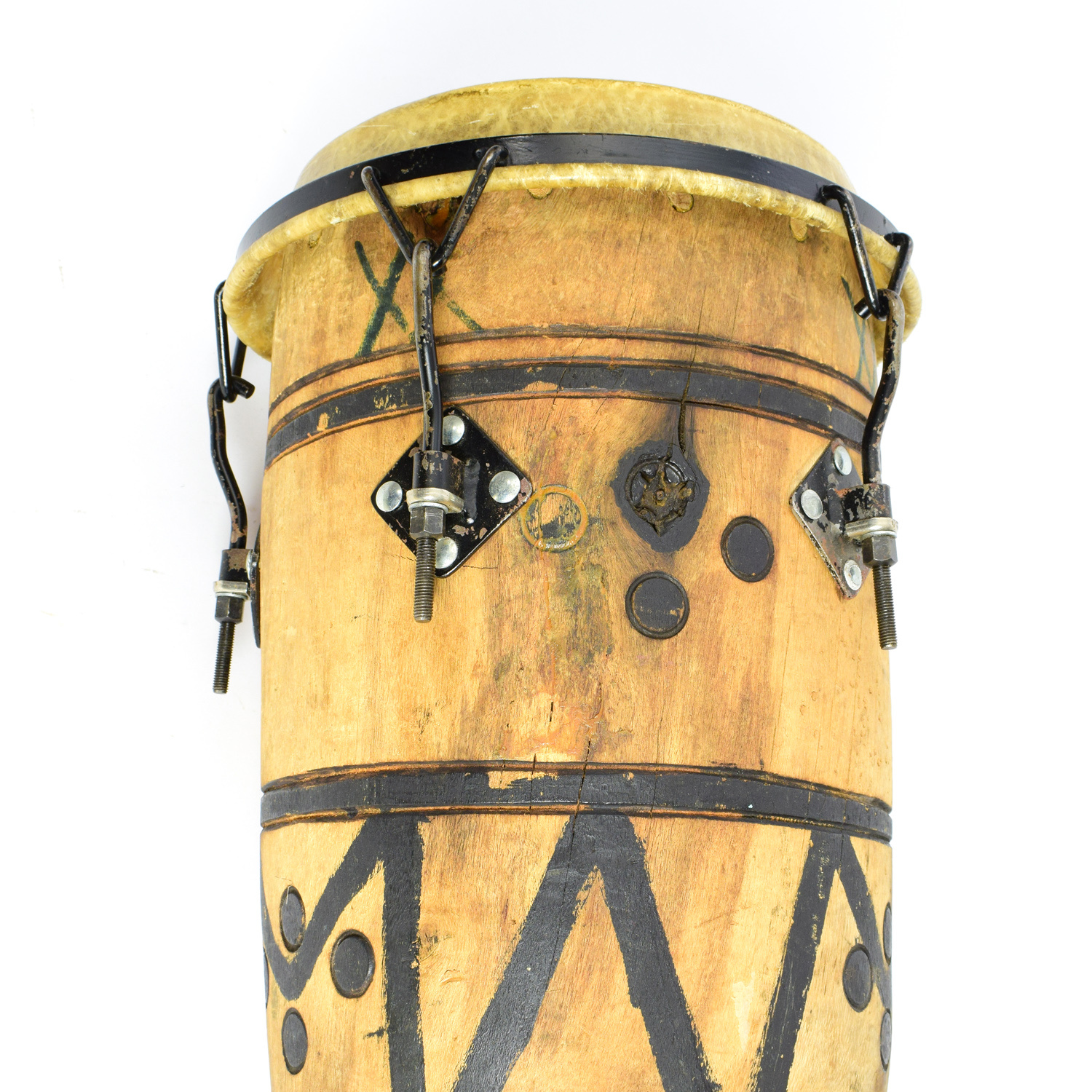 Wij hebben er in 1995 een conga-spansysteem op gemonteerd. De trommels klinken warm met een subtiel beetje sublaag vanweg het kleine gat aan de onderkant.