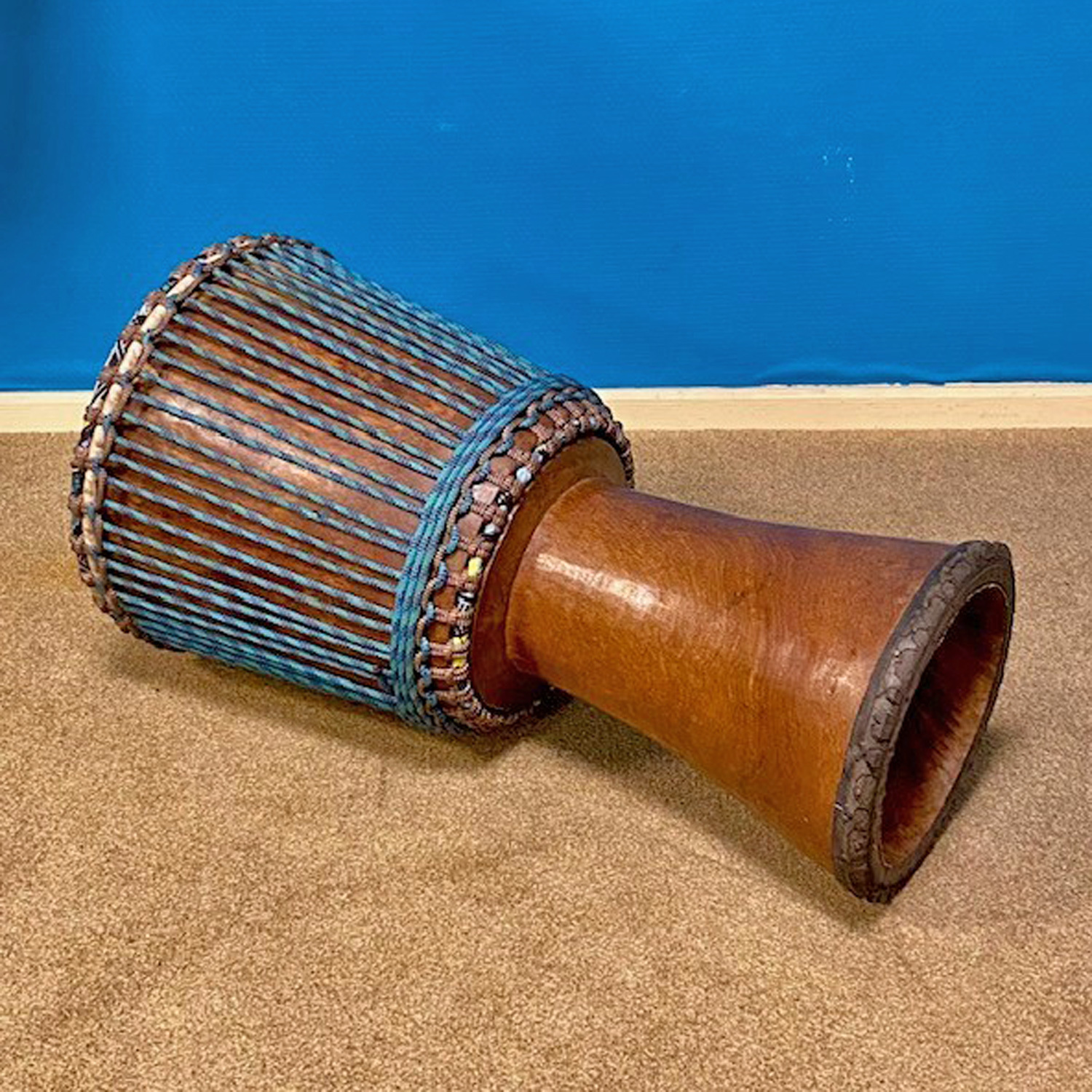 Een fraaie djembé uit Guinee met een zeer strak gespannen koeienvel. De klank is hoog, hard en toch vol, en met een mooie bas. Met 10,7 kilo is deze trommel relatief zwaar, maar dit maakt wel dat hij extra hard klinkt!