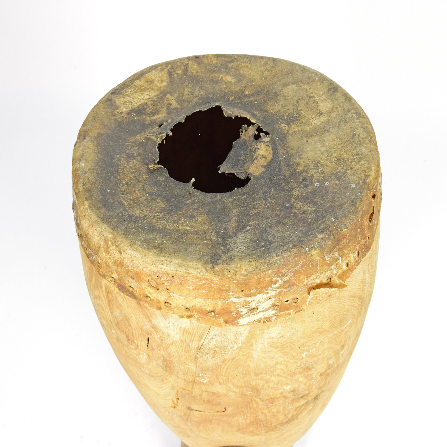 Een oude trommel uit Malawi, waarschijnlijk afkomstig van het Chewa volk. De trommel is circa 60 jaar oud. Het vel is met krammen op de ketel bevestigd.