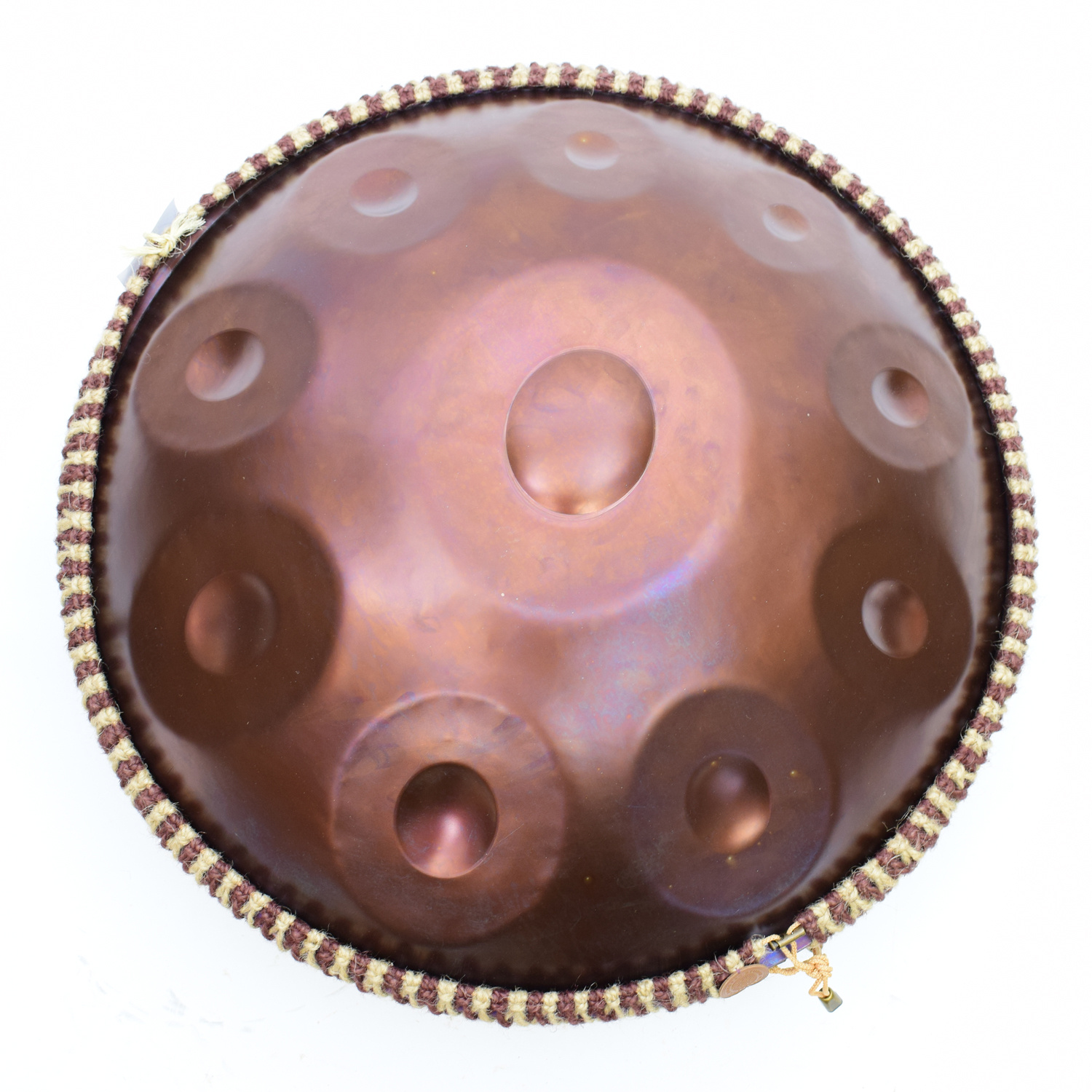 Deze handpan omvat de volgende tonen: D3 (F3) (G3) A3 Bb3 C4 D4 E4 F4 G4 A4 C5 (D5)