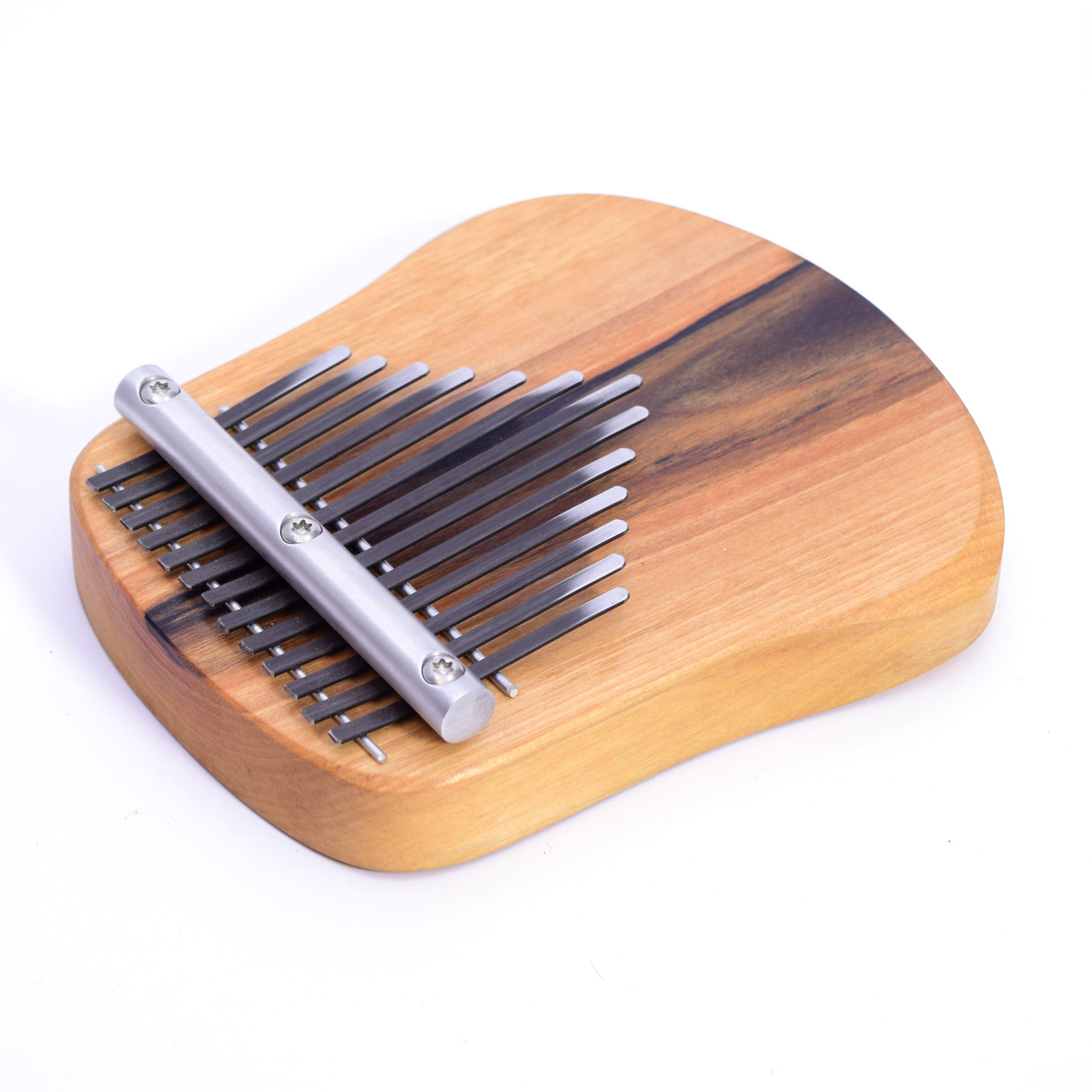 Deze handgemaakte kalimba uit Slowakije heeft een heldere klank en is pentatonisch gestemd.