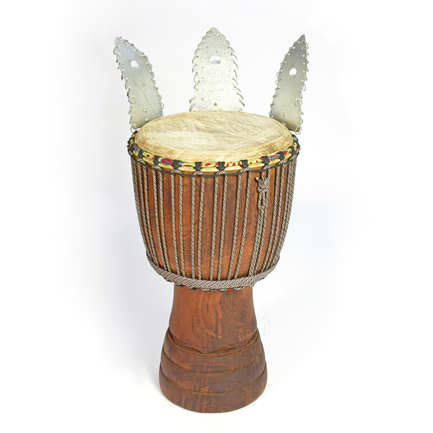 Het werkt het beste als de djembé vrij van de grond wordt gehouden.
