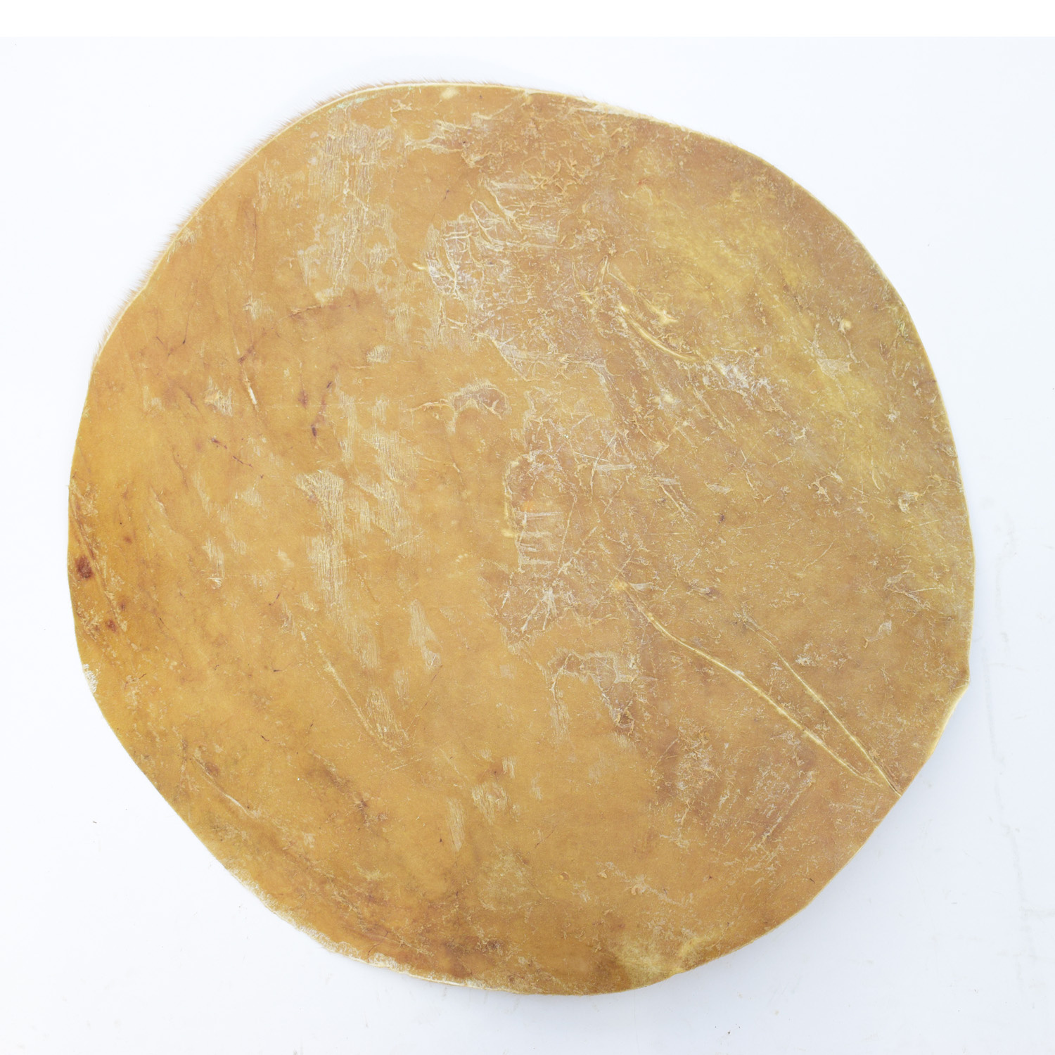 Zeer sterk gedroogd koeienvel, geschikt voor djembé, bougarabou, doundoun of powwow drum.