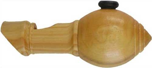 Een houten fluitje dat het geluid van de koekoek heel goed nabootst. Terwijl je blaast houd je het gaatje open voor een hoge toon, en daarna doe je het gaatje dicht met een vinger voor een lage toon: 'koekoek'