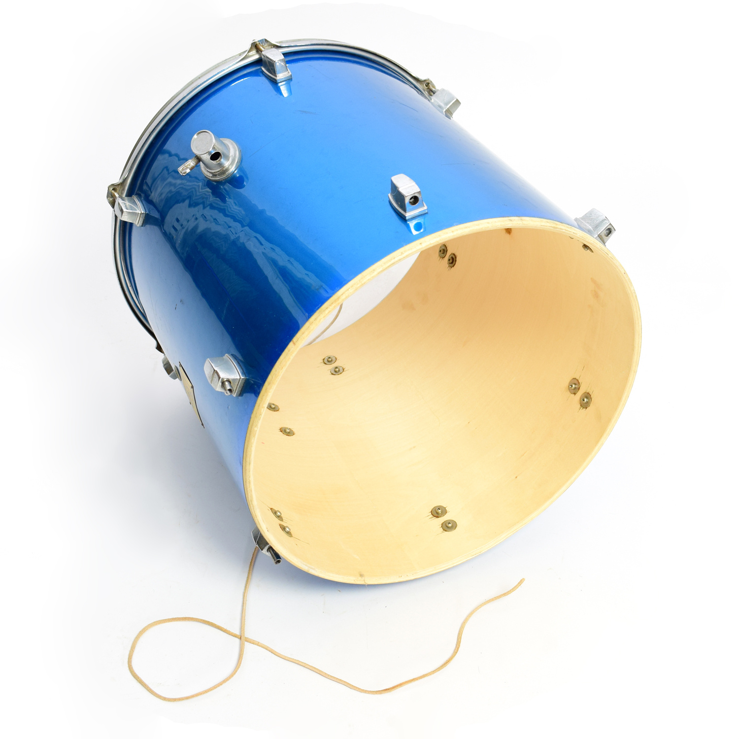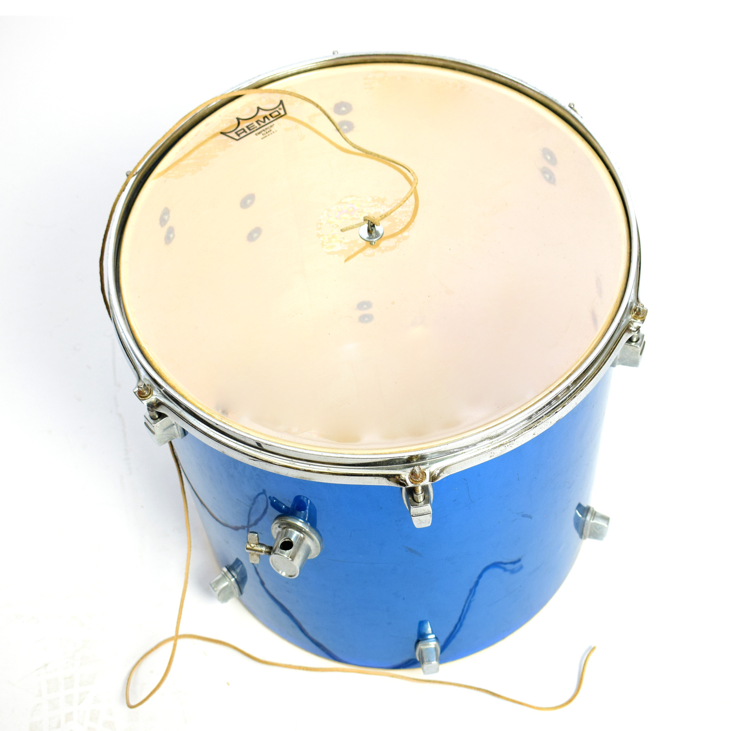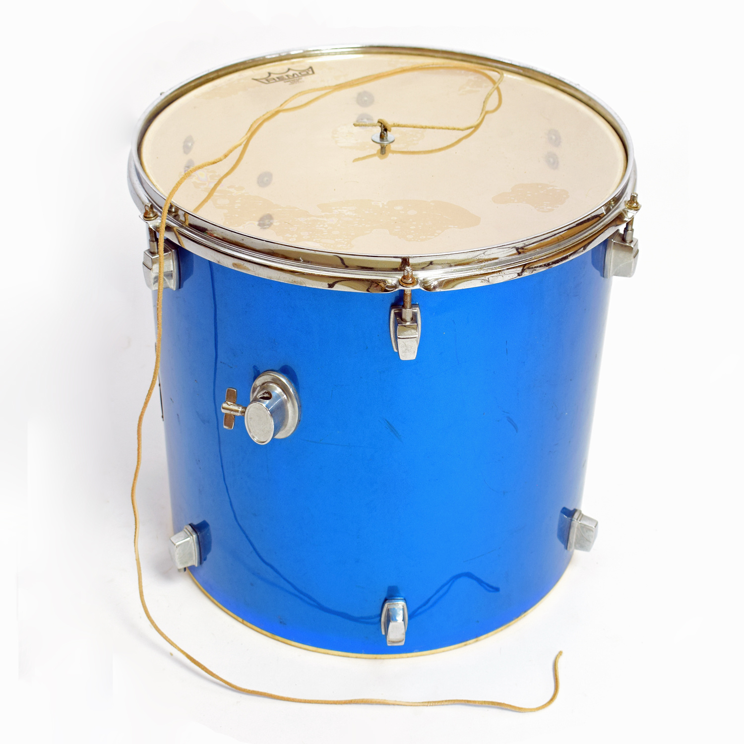 Het bestaat uit de ketel van een oude tomtom, bespannen met een Remo drumvel. In het midden van het vel hebben wij een leren veter bevestigd. Dit is een grotere variant van een cuica.