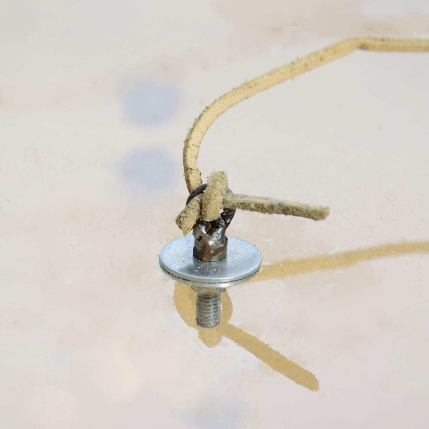 Als je dit snoer nat maakt kun je er met je hand overheen wrijven. Door hard of zacht te knijpen veroorzaak je meer of minder wrijving.