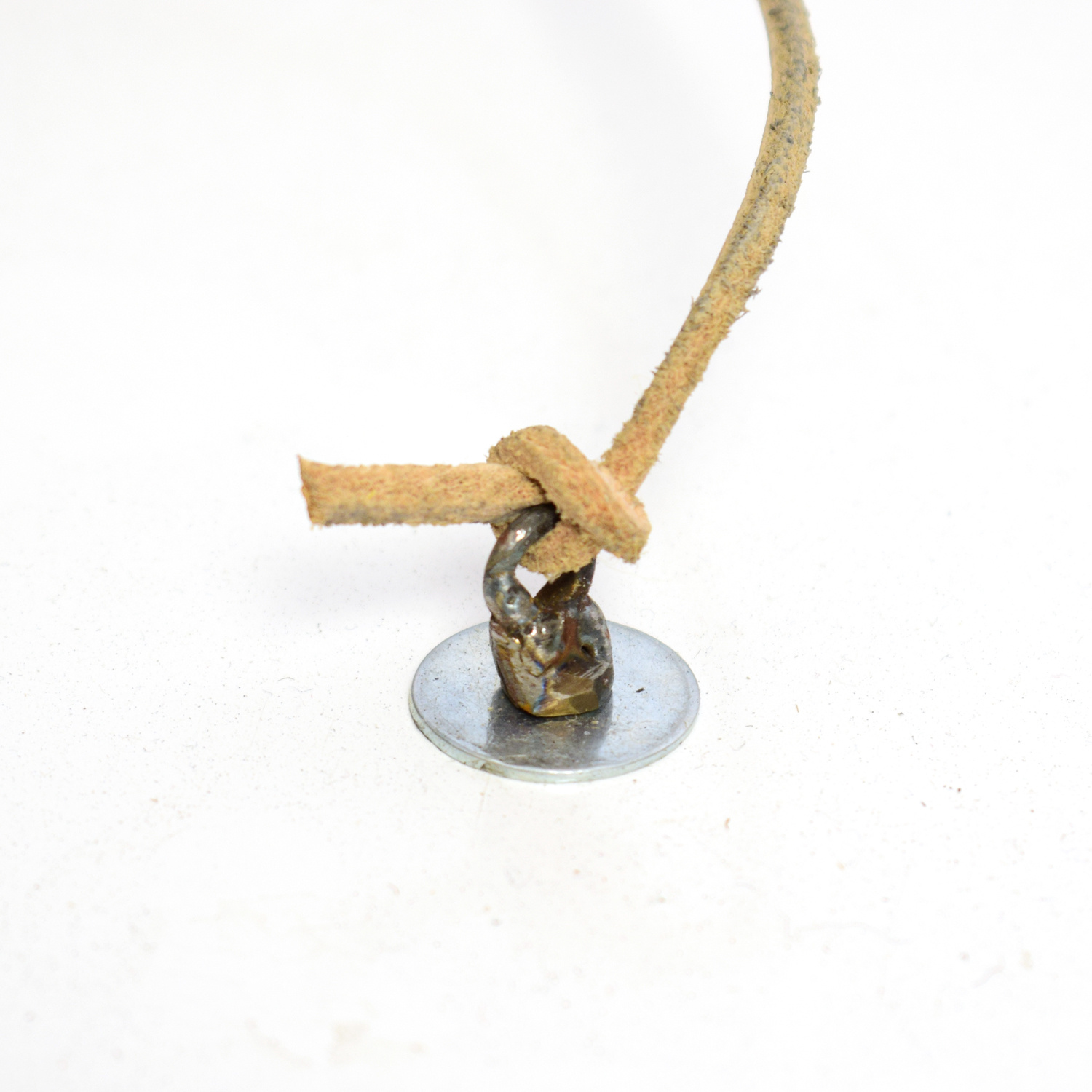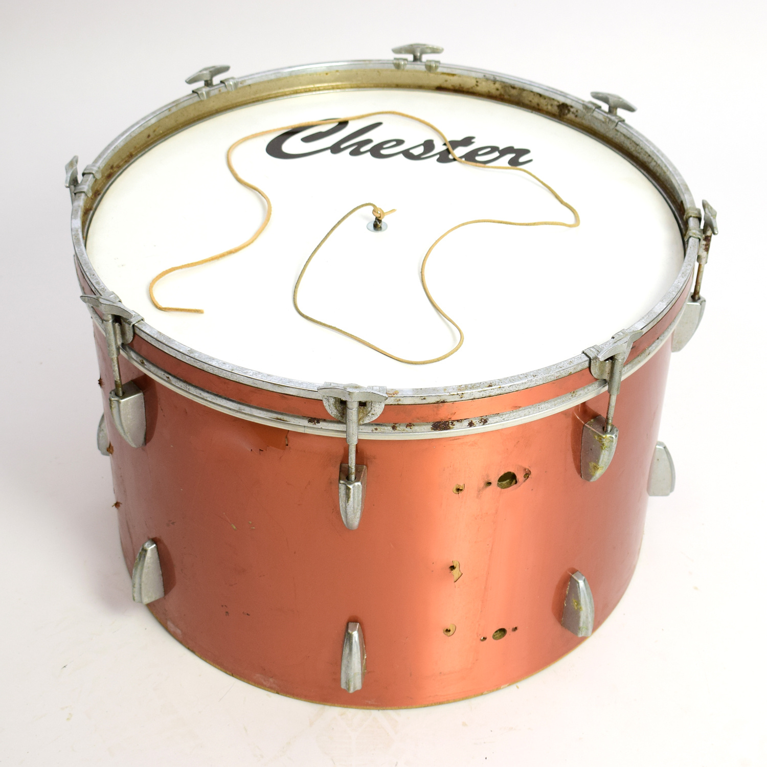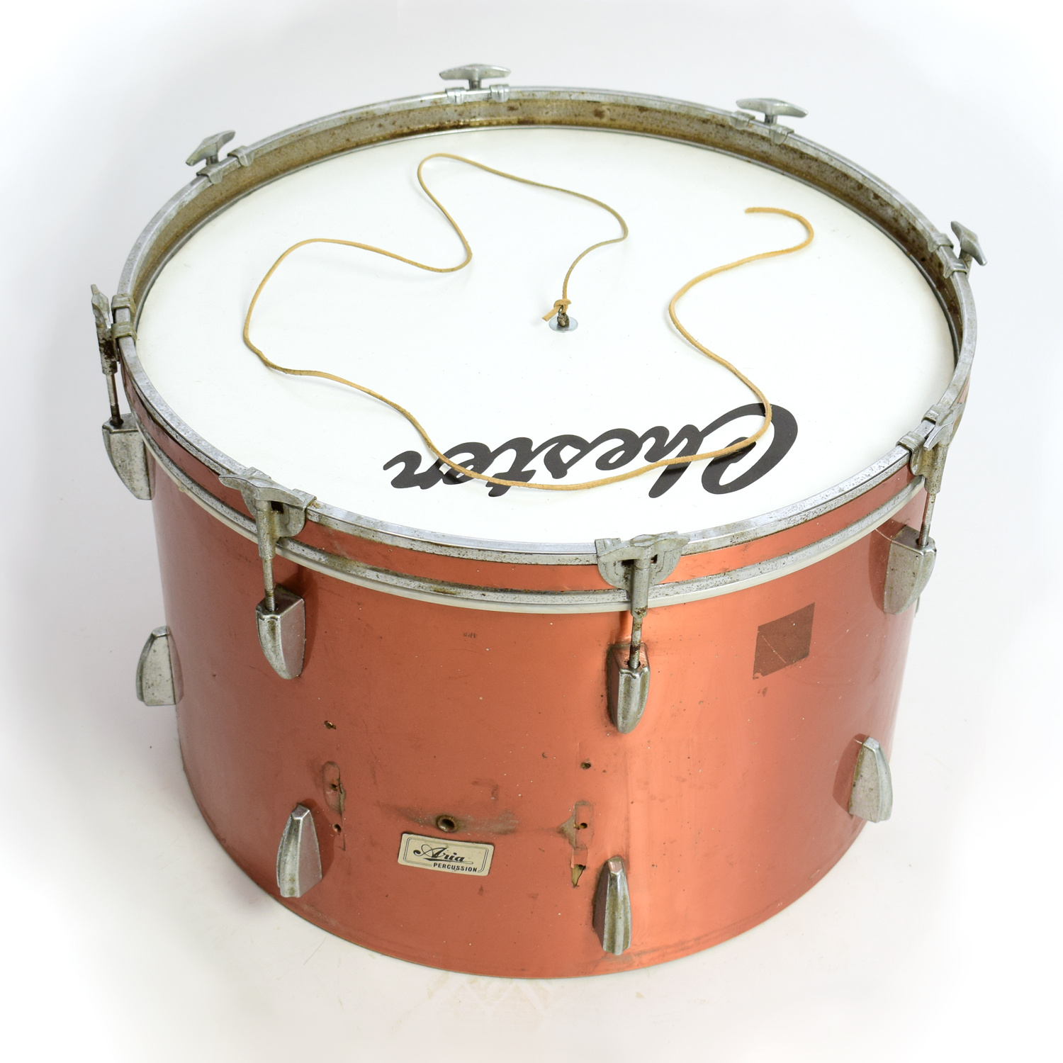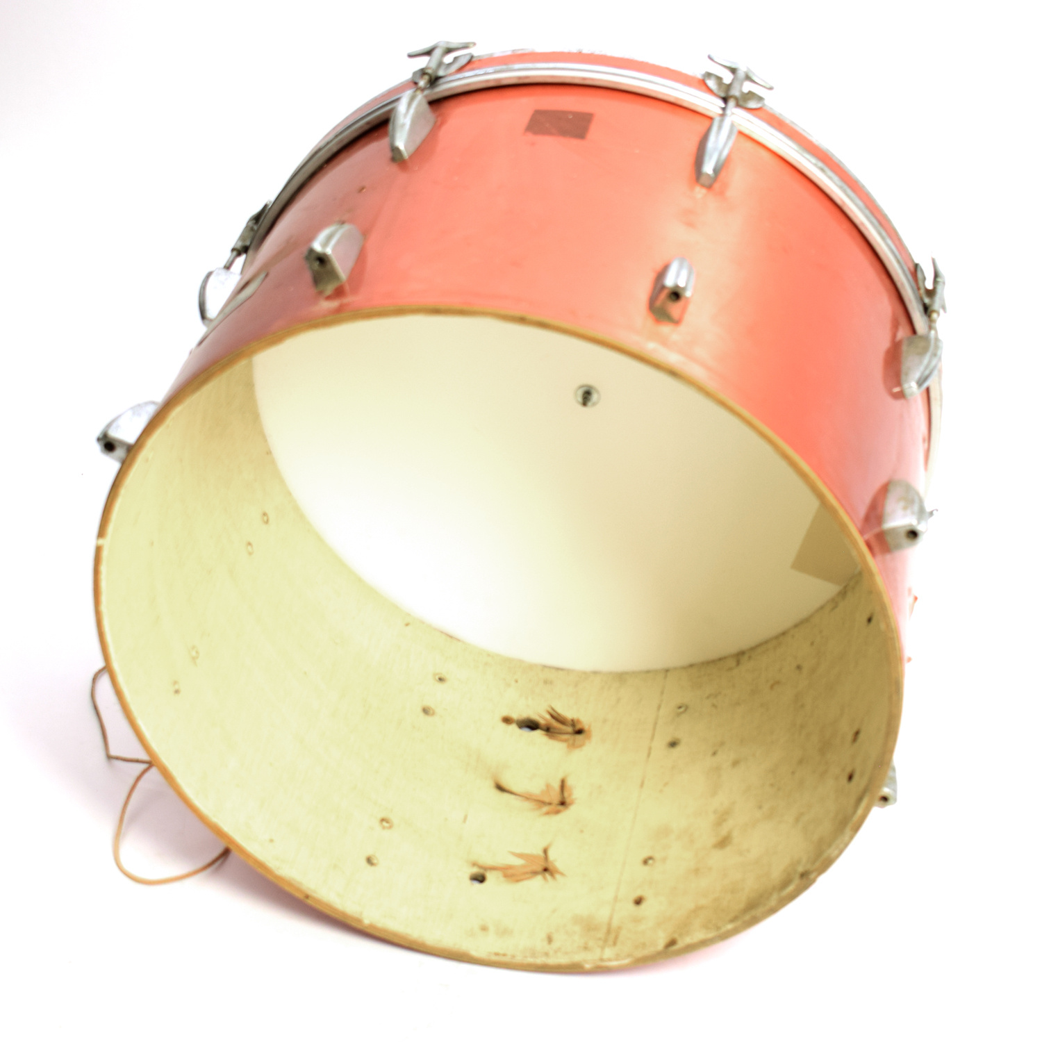 Het bestaat uit de ketel van een oude afgedankte bassdrum, bespannen met een kunststof vel. In het vel hebben wij een leren veter bevestigd.
