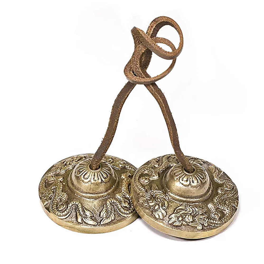 Tingsha's met drakenmotief, Ø 6,5 cm, India
